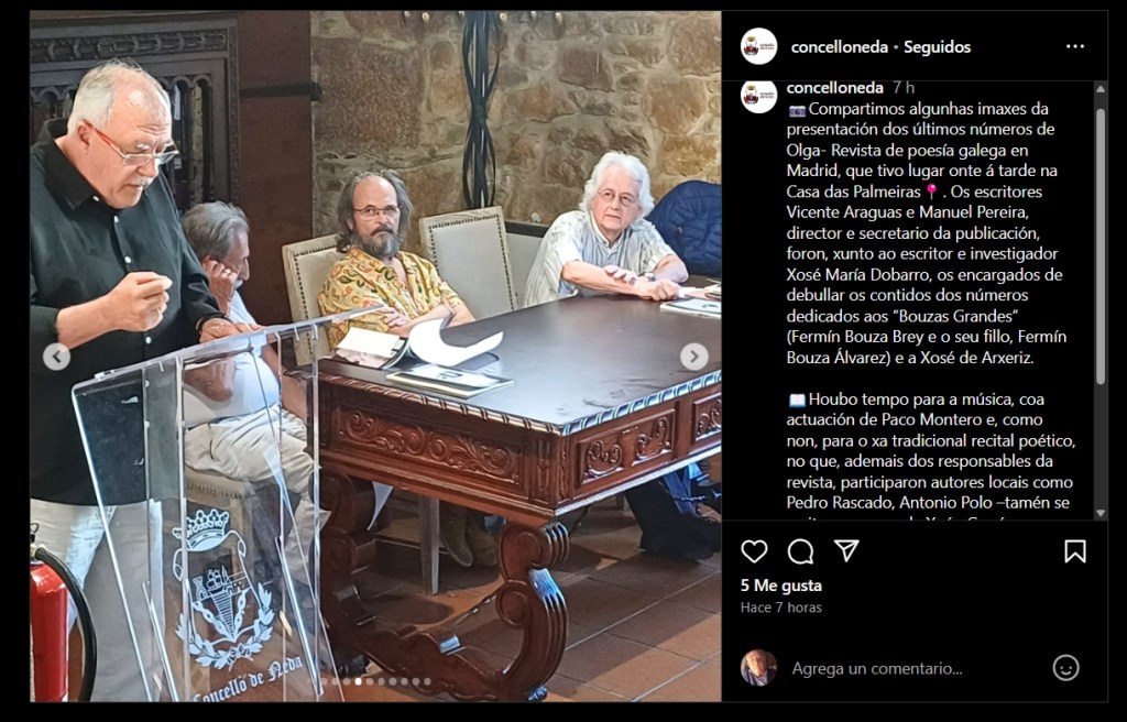 Recitado en A Casa das Palmeiras (Neda) 18/07/2024. Presentación de la revista «OLGA»